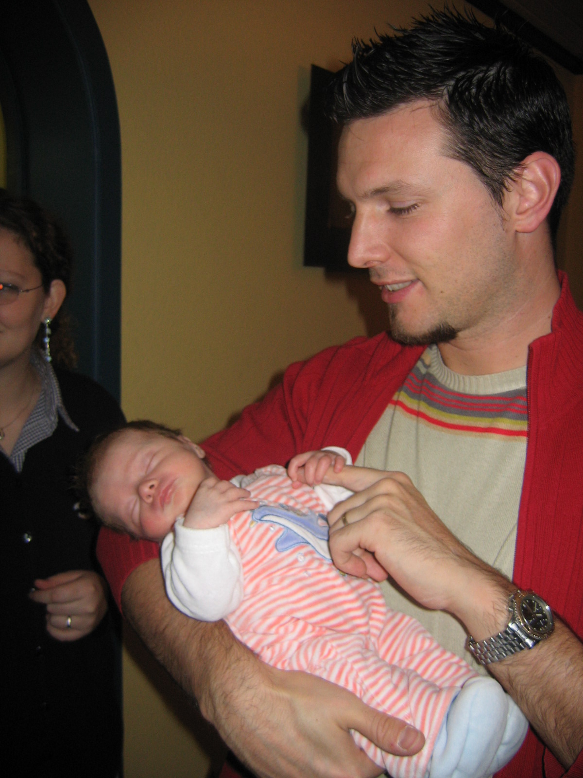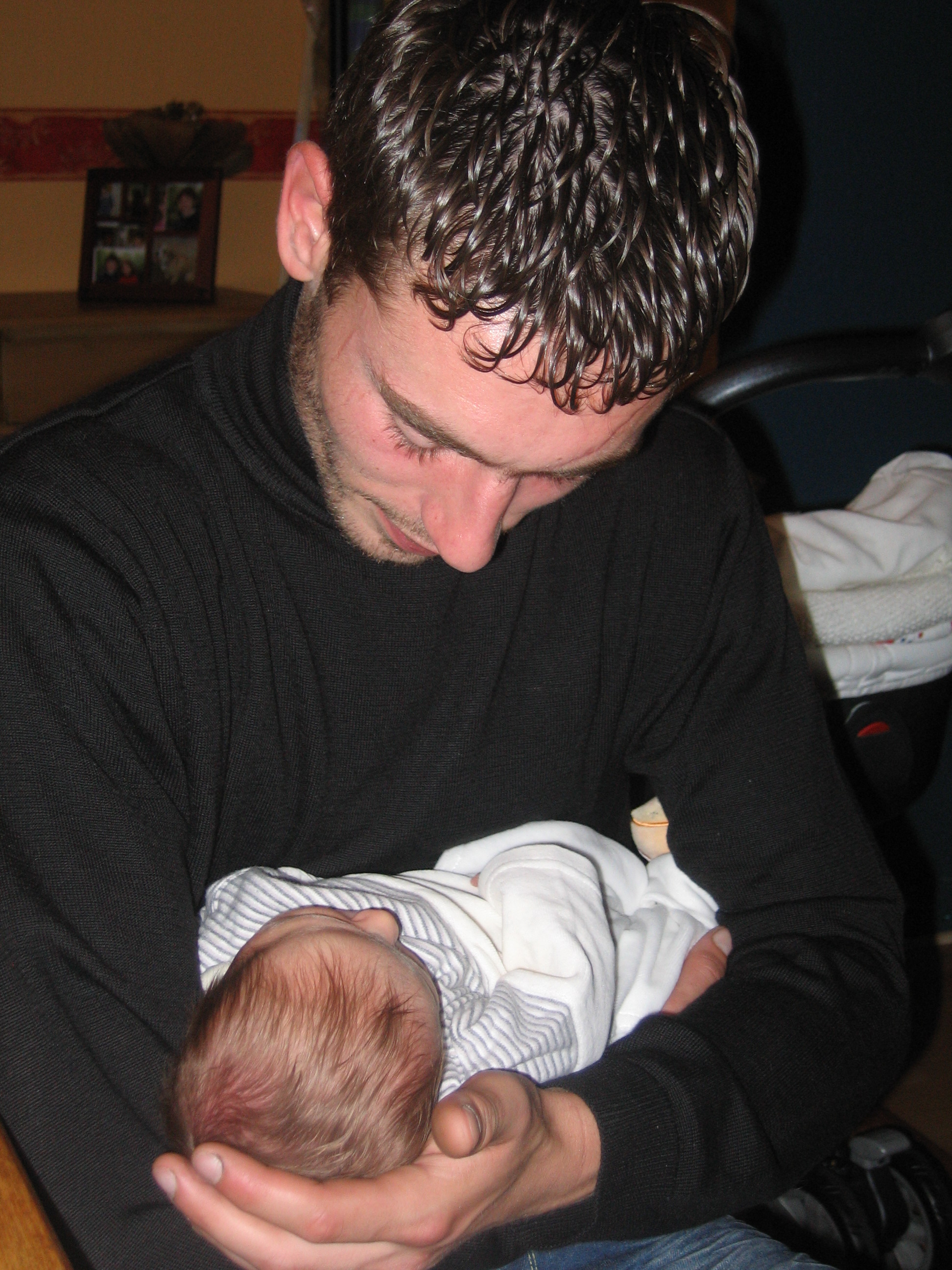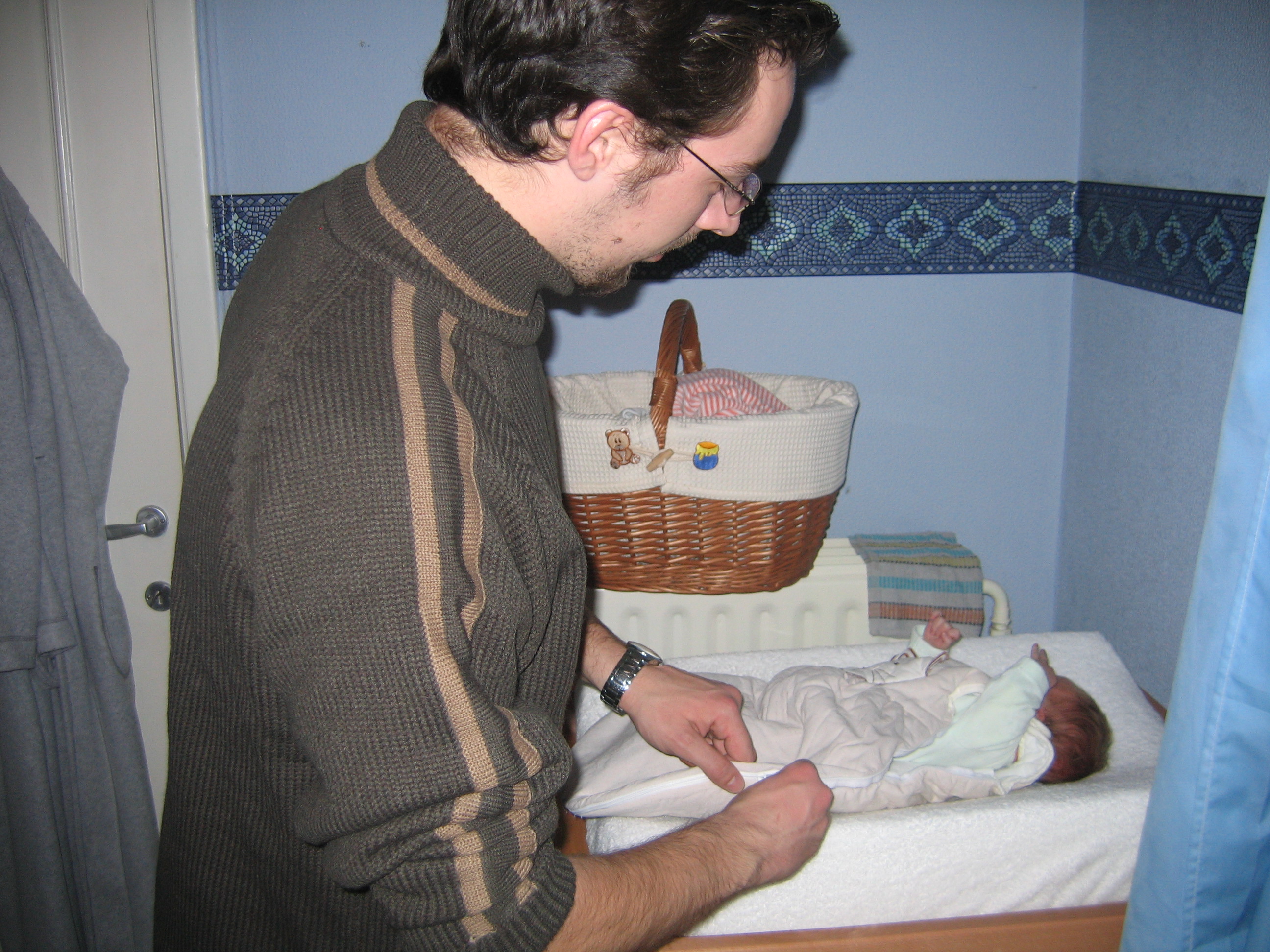 et il m'a donné mon bain avec papa. Je pense qu'il était encore plus nerveux que moi.