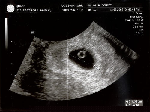 13 mars 2006 - EchographieLe 13 mars 2006, on me prend en photo pour la première fois. Je ne ressemble pas encore à grand chose, il faut bien le reconnaître.