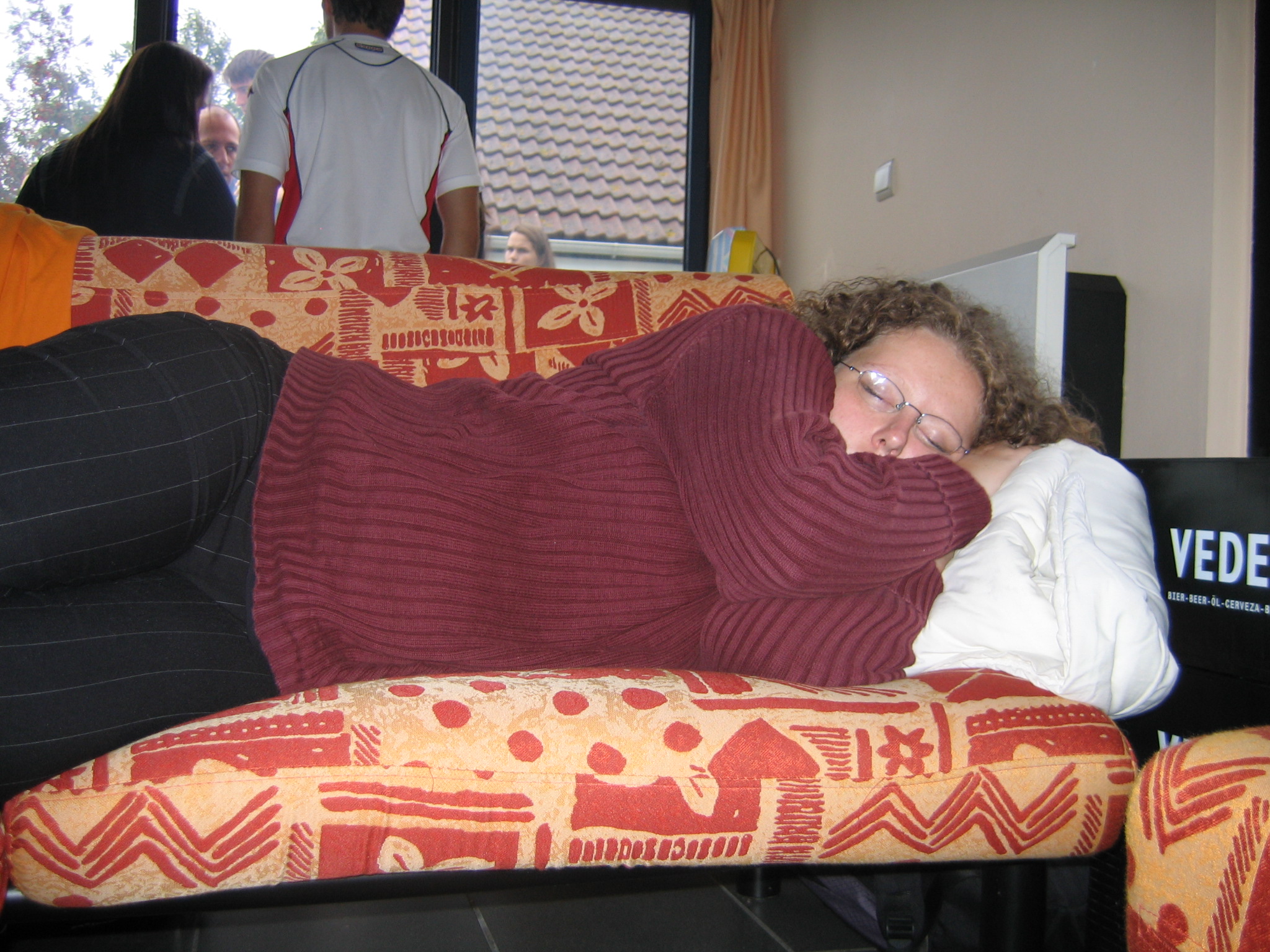 Maman (qui n'a rien compris) utilise les bacs de bières comme oreillers.